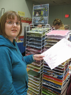 My daughter and I attended a crop yesterday for a fundraiser for a school in which a close friend of mine is on the PTA. We had alot of fun, ate some great food, spent money we didn't have and did very little scrapping.....of course!! Jaclyn won a door prize from a CTMH consultant...a $33 value. We both won small door prizes as well. I started two mini albums--very simple ones with an Easter theme as part of the Scrapper's Delight Blog Hop which is going on through April 4th. I'll be posting the other mini in the next few days. But, I will post 'glimpses' of the album.